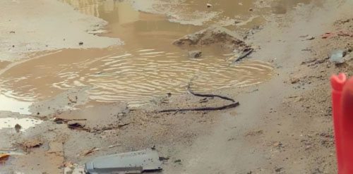 經(jīng)現(xiàn)場(chǎng)調(diào)查,這條電線原來是坐落路面下方,且有塑料管維護(hù),而現(xiàn)在路面和塑料管均呈現(xiàn)破損,導(dǎo)致電線直接暴顯露來。